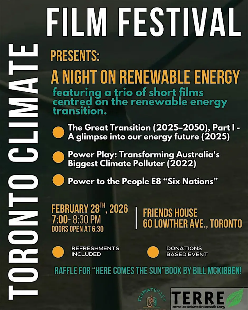 Register and More details: https://www.eventbrite.ca/e/toronto-climate-film-festival-presents-a-night-on-renewable-energy-tickets-1981396782113