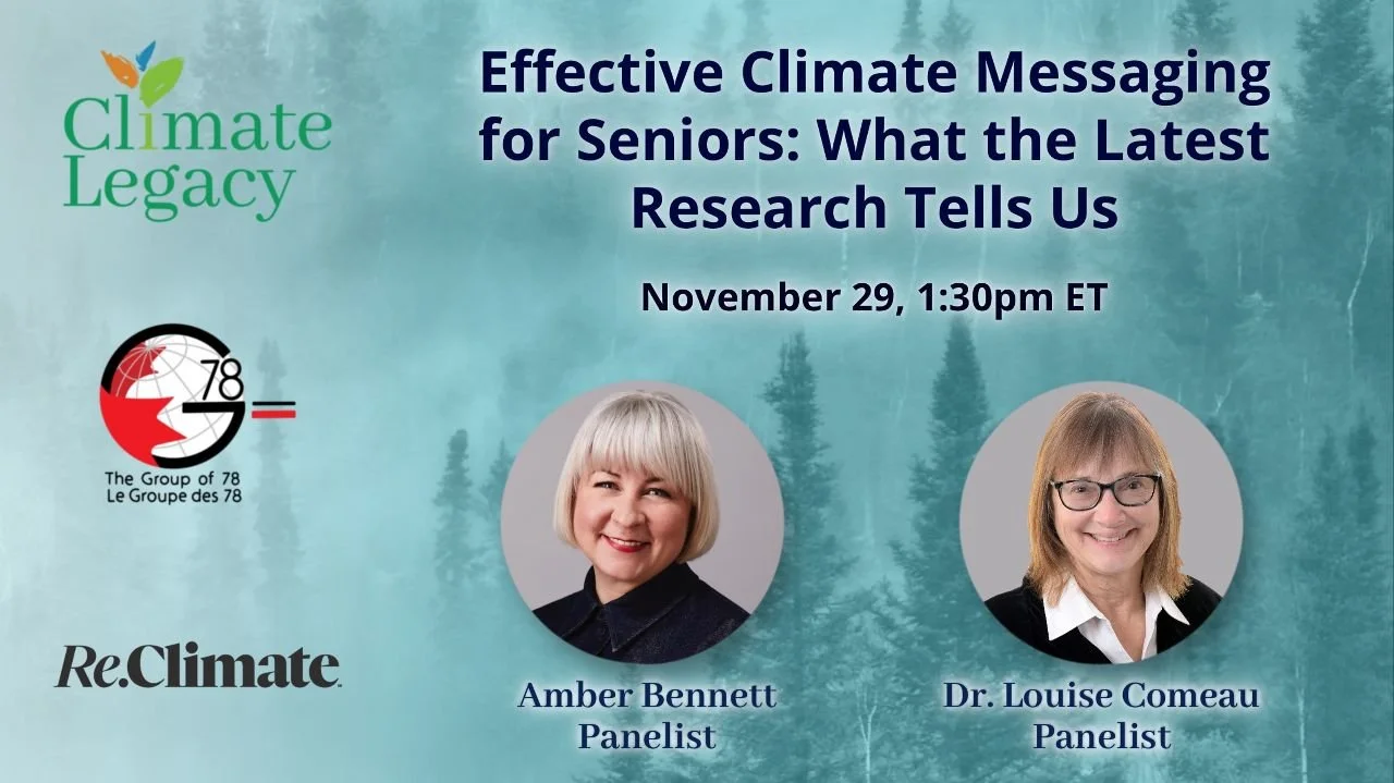 Equipped with fresh research from EcoAnalytics, on November 29th, Climate Legacy and Re.Climate are excited to present a new webinar exploring the unique ways that seniors engage with climate action. If you would like to improve your messaging and better tailor your work to engage seniors, we hope to see you there.