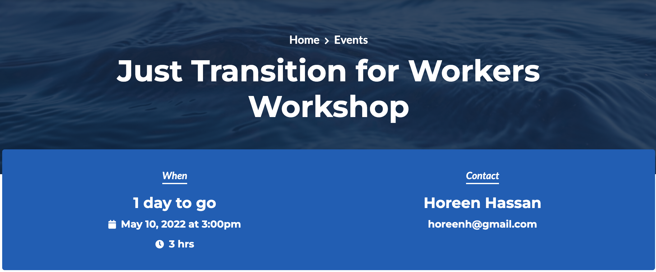 RSVP for online workshop about ‘just transition’ for workers in industries that must adapt in response to climate crisis.