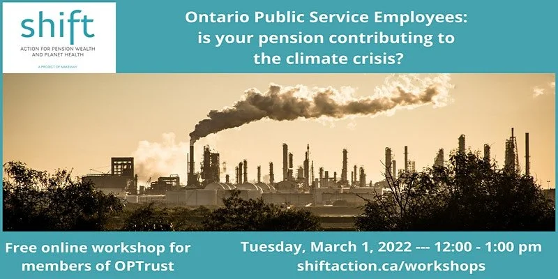 Hosted by climate and energy experts from Shift Action for Pension Wealth and Planet Health, join working and retired employees of the Ontario Public Service to learn how you can help protect your pension and tackle the climate crisis.
