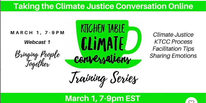 To help empower these conversations, ClimateFast is running a series of KTCC webcasts on Monday nights throughout March - the 1st, 15th, 29th and April 12th between 7-9pm.