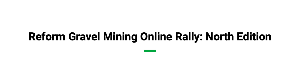 Join the DAMN! Campaign for an online rally on Thursday May 5 with the Northern Ontario community, featuring North Shore Environmental Resource Advocates (NSERA). There will be a variety of informative speakers, entertainment and actions you can take to support gravel mine reform. RSVP today!